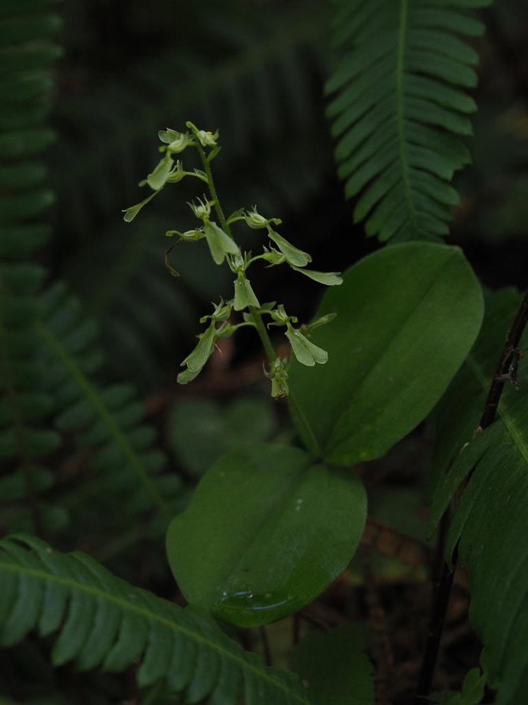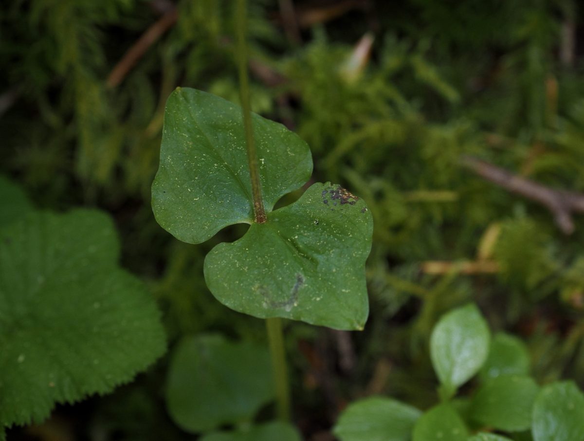 Variations in the heart-leaf twayblade’s morphology7Morphology is the form or structure of a plant. across its broad range have led to attempts at classification of individuals with similar attributes into lower taxonomic ranks. However, these have proven problematic, as lack of consistency within and across such designations defies organization and may result from environmental factors rather than genetic diversity. In North America, where there is greater variation in the size and color of the heart-leaf twayblade, the west’s more petite version that produces flowers across the species’ color spectrum is sometimes considered a distinct variety, cordata, whereas its larger and typically green-flowered counterpart is sometimes classified as var. nephrophylla. However, var. nephrophylla becomes difficult to distinguish from var. cordata as it extends into the west. Specimens with additional leaves above the standard pair are sometimes considered unique forms of the species: f. trifolia if there is one additional leaf and f. tetraphylla if more than one. Given this fluidity in its morphology, Neottia cordata is sometimes characterized as a “species complex”, which recognizes variation between closely related organisms currently without authoritative delineation of specific taxa.